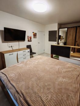 - полностью меблирована: двуспальная кровать, 2 рабочих стола, 2 шкафа, 2 комода