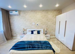 Белая спальня , белые шкафы на заказ , дорогой диван Лофт, каждое сиденье выдвигается отдельно , гардеробная комната , на кухне диванчик с каретной стяжкой , неоновая подсветка , отличная огромная утепленная лоджия.