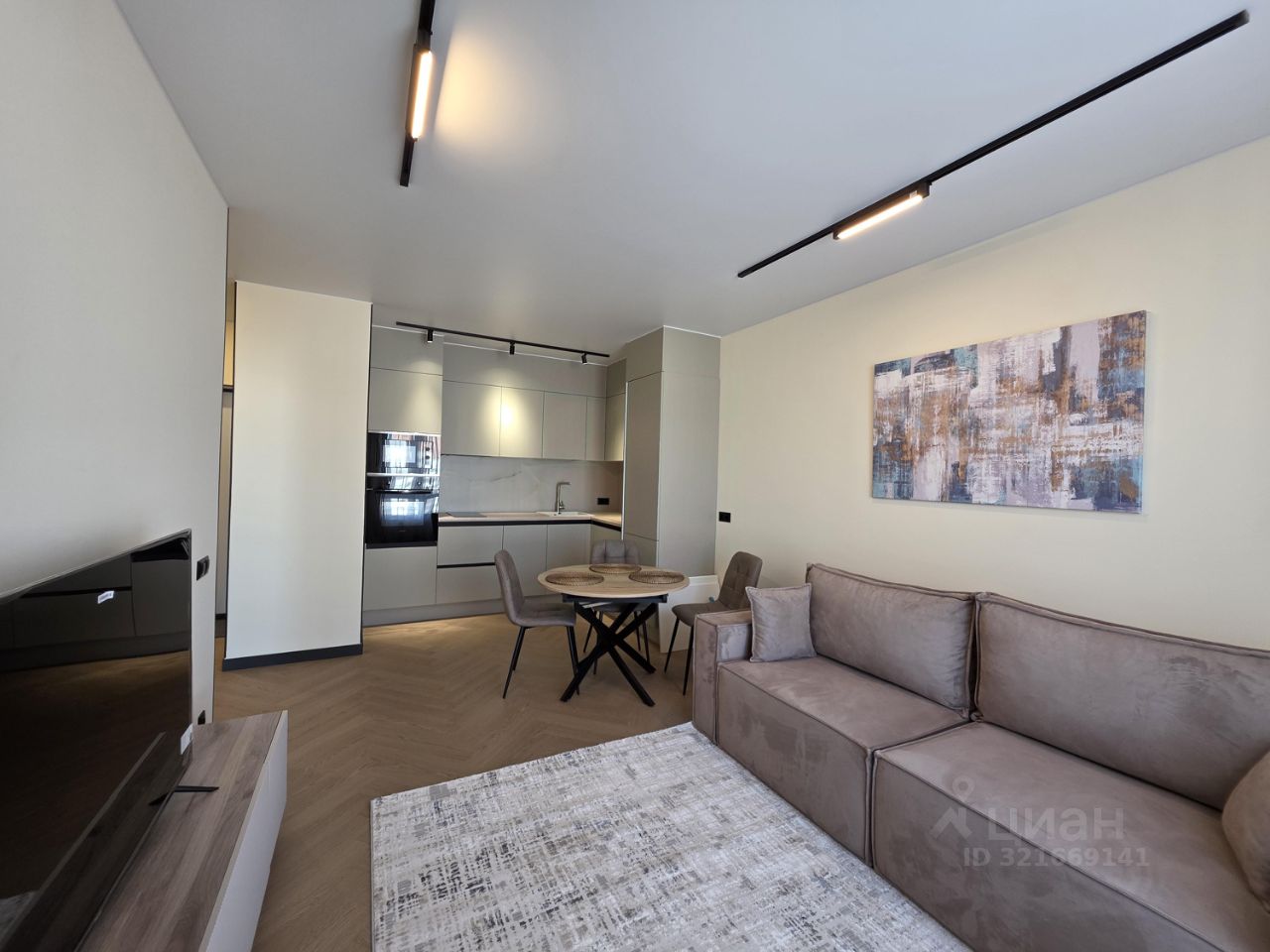 Зона гостиной: удобный раскладной диван с подушками, тумба с ящиками для хранения, ТВ ЖК. Кондиционер. Зона кухни и гостиной оснащенны вариантами освещения.