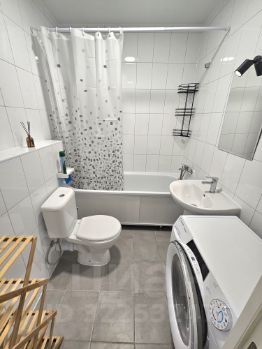 В квартире выполнен косметический ремонт, созданы все условия для вашего удобства. Просторная кухня объединены с гостиной, оборудована всей необходимой мебелью и техникой: холодильником, кондиционером. Спальня- также меблирована, удобная коовать, новый матрас, тумбочки прикроватные, шкаф, ЖК ТВ. Санузел совмещенный, есть ванна, окна выходят на улицу, что обеспечивает много света в течение всего дня.