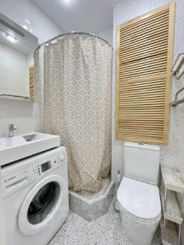 Санузел совмещённый, выполнен в современном стиле с использованием качественных материалов.