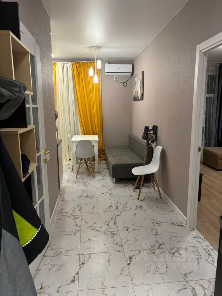 Квартира меблирована и готова к проживанию. В комнатах и на кухне есть необходимая мебель. Для вашего комфорта установлены кондиционер, холодильник, телевизор, посудомоечная и стиральная машины. Ванная комната оборудована ванной, что добавляет удобства в повседневной жизни.