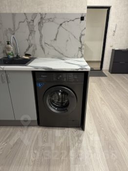 В квартире сделан свежий евроремонт. Удобная планировка позволяет эффективно использовать пространство. Студия полностью меблирована: есть вся необходимая мебель как на кухне, так и в жилой зоне. Из техники присутствуют холодильник, плита, микроволновка, стиральная машина и духовка (в процессе установки). Санузел совмещенный, оборудован современной душевой кабиной. Подключен интернет.