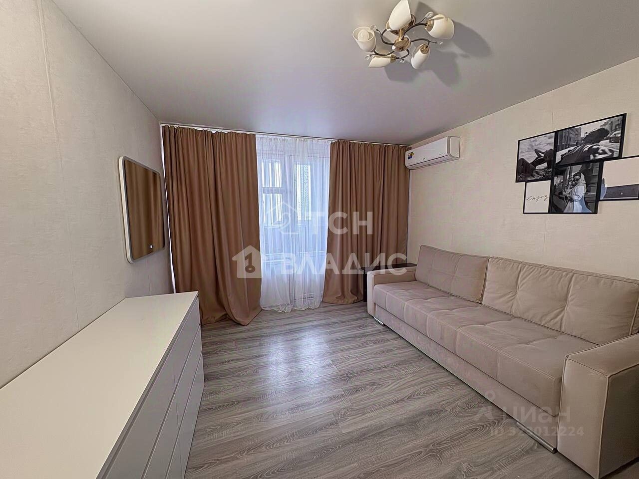 Общая площадь квартиры 34,6 м. Жилая площадь составляет 18 кв. м, площадь кухни — 10 кв. м. В квартире сделан косметический ремонт, есть большая лоджия. Окна выходят на улицу. Совмещённый санузел. В квартире есть все неоходимое для жизни: раскладной диван в комнате, большой шкаф, места для хранения, стиральная машина, холодильник, микроволновка.