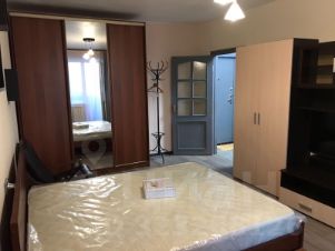Уютная комфортная однокомнатная квартира, в комнате двуспальная кровать, телевизор, большой вместительный шкаф с зеркалом и двустворчатый шкаф совмещённый с полками и выдвижными ящиками, письменный стол со стулом, можно использовать в качестве рабочего места, кондиционер, работает как на холод так и на тепло, застеклённая лоджия с оборудованными полками для хранения, в кухне варочная панель, микроволновая печь, обеденный стол со стульями, холодильник, вытяжка, чайник, в квартире есть бойлер, на случай отключения горячей воды в профилактический период, стиральная машина в ванной комнате, в коридоре прихожая с вешалками и полками.