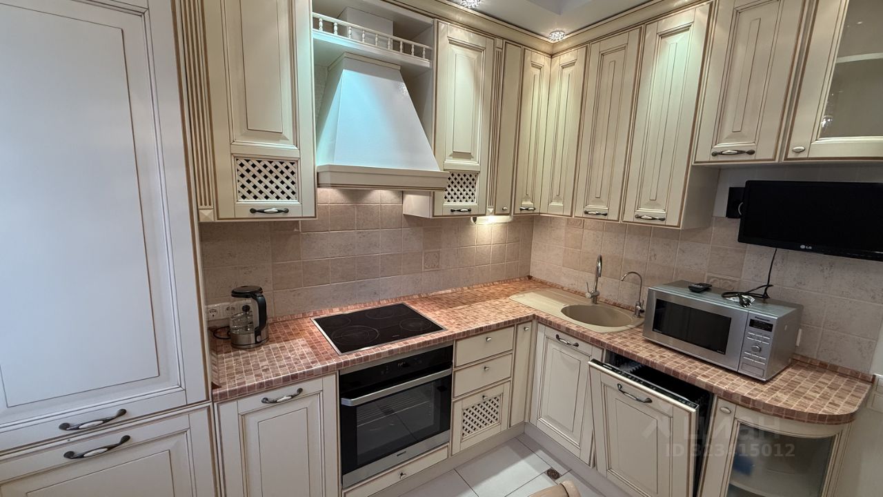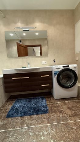 В квартире есть все необходимое для комфортной жизни: современная мебель на кухне и в комнатах, а также полный набор техники, включая кондиционер, холодильник, посудомоечную и стиральную машины, а также телевизор. Планировка включает в себя одну ванную комнату с ванной и два санузла, что очень удобно для семьи. Кроме того, есть просторная лоджия для отдыха.
