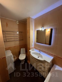 Просторный, чистый сан.узел с вместительными шкафчиками и зеркалом, стиральной машиной.