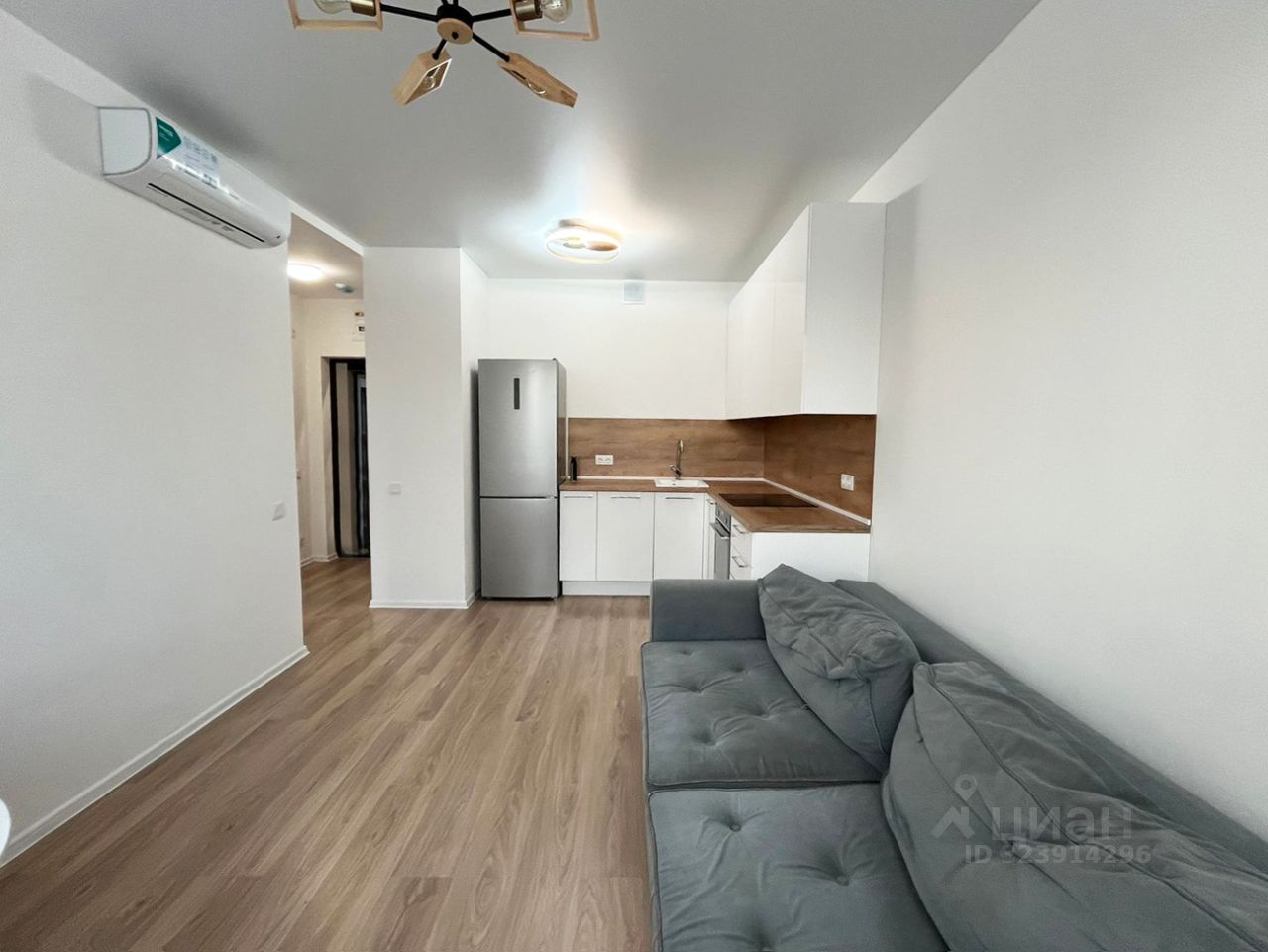 Площадь 34 метра, кухня-гостиная 17 метров, спальня 11 метров, совмещенный санузел.