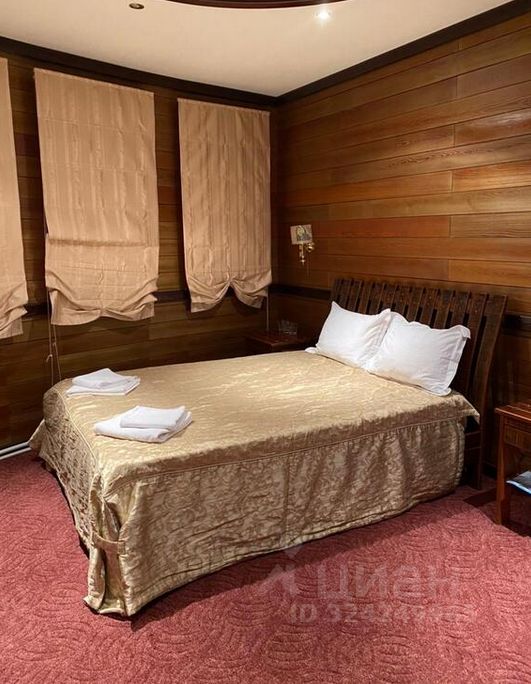 Номер люкс с 1 двуспальной кроватью. В номере: двуспальная кровать, постельное белье, диван, кресла, тумбочка, телевизор.