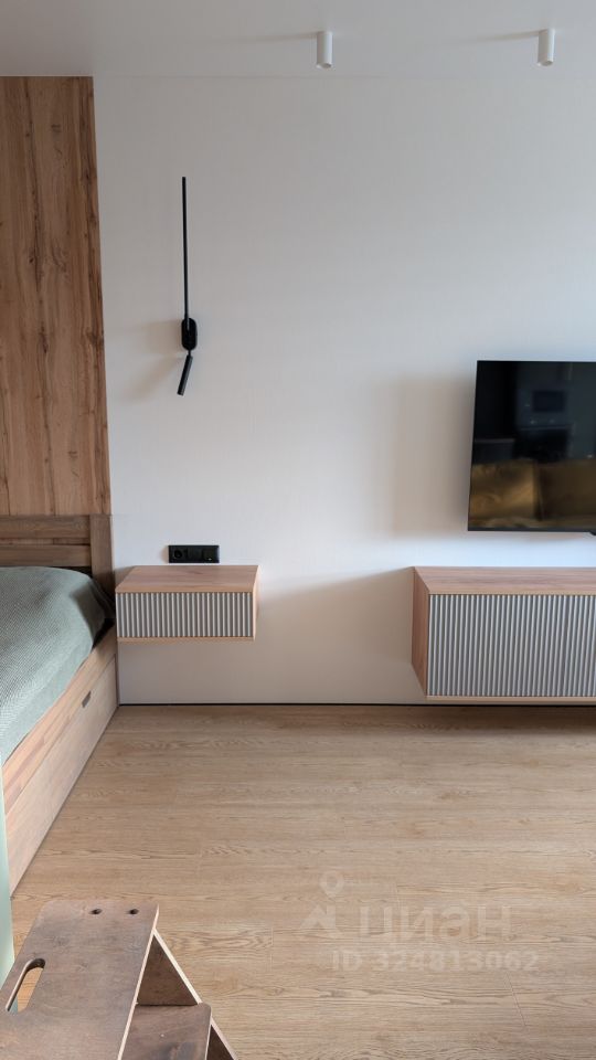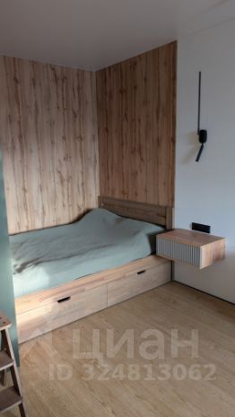вместительный шкаф в коридоре в цвет кухни, он же является перегородкой для кровати.
