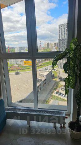 В квартире панорамные окна в пол. Окна выходят на широкий внутренний двор, слева от дома скверно.