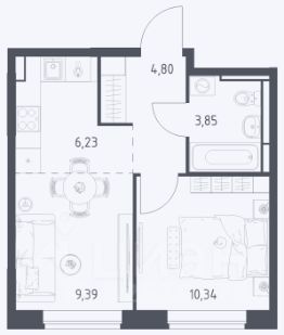 Просторная евро 2-двушка в новостройке от "Самолета" для 2-3 человек.