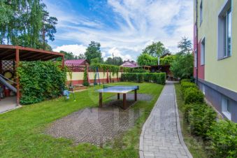 Дом 3-х этажный монолитный. Находится на огороженной территории. Во дворе зона барбекю, детская площадка, велосипедная и автомобильные стоянки. На участке высокие сосны. В цокольном этаже дома кладовые, подземный гараж, постирочная, сушильная комнаты. В доме есть интернет.