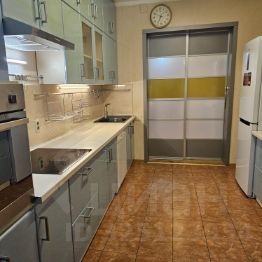 В квартире (3 спальни +кухня со столовой + 2 санузла + холл) с отдельным входом и собственным садиком- террасой. Квартира состоит из прихожей с шкафами-купе, холла, 2 санузлов (один с ванной, второй с душевой кабиной), кухня и столовая 27 м2 встроенная кухня, варочная с.к панель, духовка, СВЧ, холодильник, посудомоечная машина, трех спален 16, 15 и 12 м2 , в каждой из них кровати, столы, книжные шкафы и шкафы-купе,