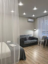 В квартире имеется всё необходимое для приятного пребывания: чай и кофе, белоснежную постель, мягкие подушки, пушистые полотенца и одноразовые принадлежности, удобная двуспальная кровать с комфортным матрасом, двуспальный диван, SMART TV с набором каналов.