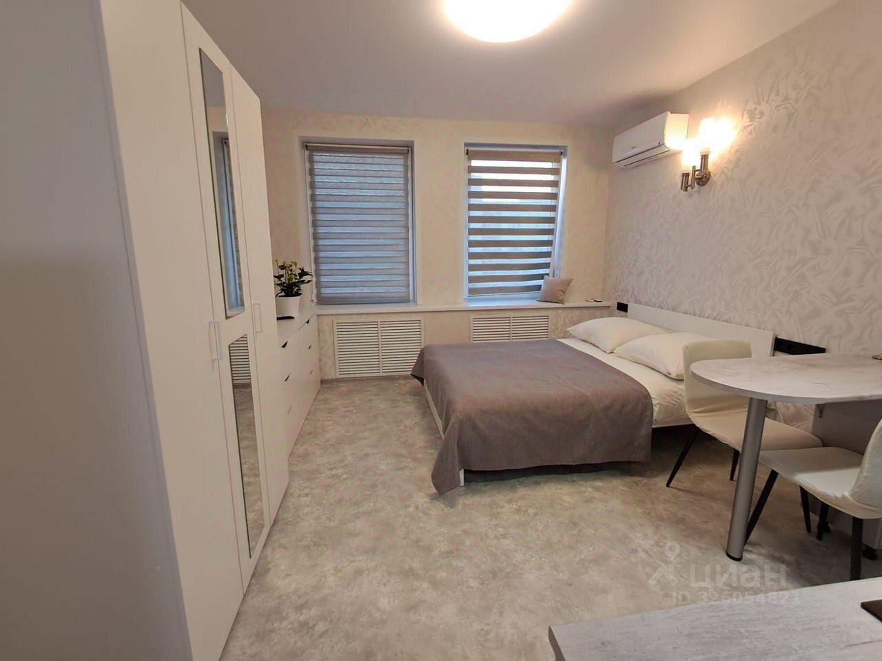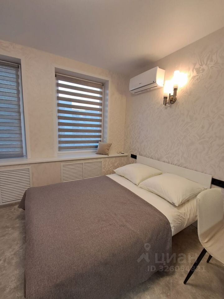 Двуспальная кровать 160*200, телевизор Смарт ТВ, стиральная машина, сушилка, гладильная доска, утюг, комфорка, духовка, кухонная посуда, холодильник, кондиционер, водонагреватель.