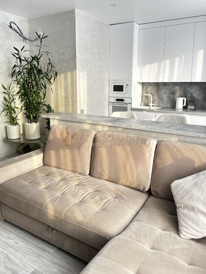 В квартире есть все необходимое для комфортного проживания. В зоне кухни имеется плита, СВЧ, духовка, посудомойка, холодильник. В гостиной располагается большой диван, телевизор, Wi-Fi, подключено телевидение, робот-пылесос. Санузел совмещённый, с ванной, есть система хранения и стиральная машина.