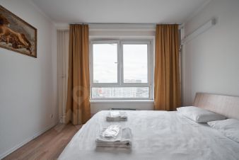 Двухкомнатные апартаменты подойдут для размещения 5 человек. Спальные места: двуспальная кровать, раскладной диван и односпальная кровать. В апартаментах есть все необходимое для комфортного проживания: утюг, гладильная доска, стиральная машина, фен, Wi-Fi и ТV. На кухне: электроплита, холодильник, микроволновая печь, чайник. Постельное белье, полотенца и средства личной гигиены предоставляются.