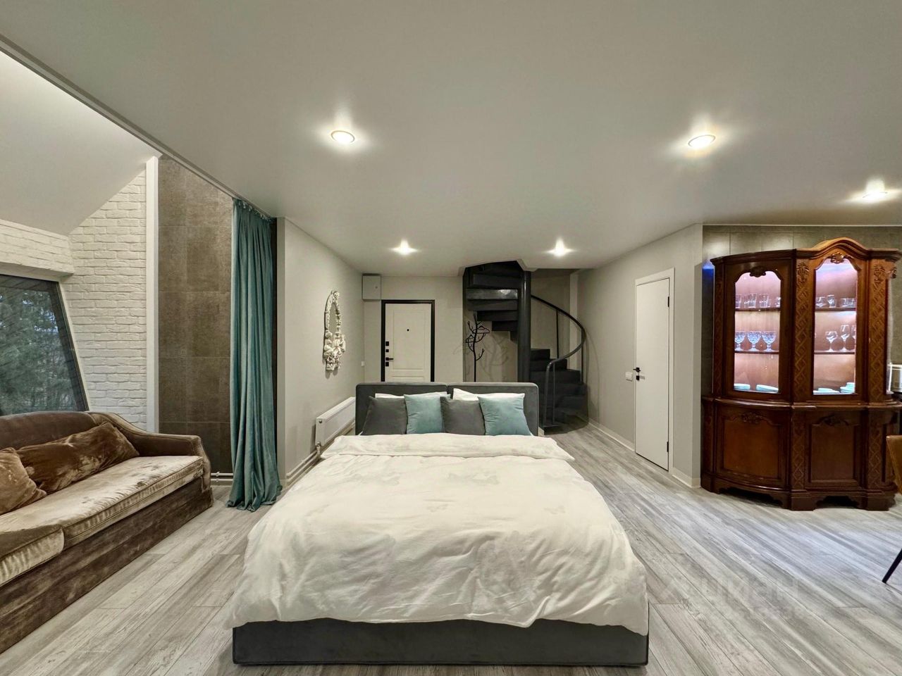 Площадь 115 м2. На первом - спальня, гостиная, кухонная и обеденная зоны; кинозал на втором и небольшая зона чилаут на третьем.