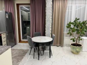 В квартире сделан дизайнерский ремонт. В комнате и на кухне есть новая мебель и техника: холодильник, стиральная машина, телевизор. В квартире сделан теплый пол, есть домашняя охранная сигнализация. Лоджия застеклена.