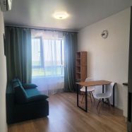 Уютная квартира-студия в новом ЖК Мытищи Парк. Сдаётся впервые никто не жил (вся мебель и техника новые). Есть всё необходимое для проживания: раскладной диван, кухонный гарнитур, обеденная зона, холодильник, варочная поверхность, духовка, посудомоечная машина, стиральная машина-автомат, посуда, кондиционер. Вид из окна на лес.