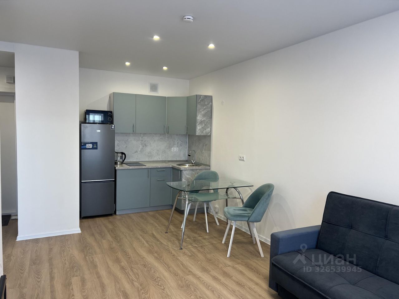 Квартира полностью готова к проживанию. В комнате и на кухне есть вся необходимая мебель, а также современная техника: холодильник, телевизор и стиральная машина. Санузел совмещенный, с ванной — идеальное место для расслабления после рабочего дня.