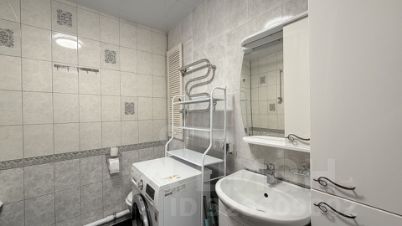 Санузел совмещенный с полноценной ванной, оборудован стиральной машиной,полкой,полотенцесушителем.