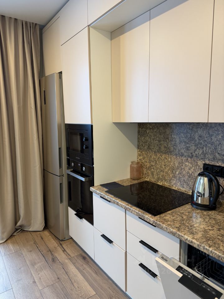**Кухня:Полноценный гарнитур, электроплита, духовой шкаф, вытяжка, холодильник, посудомоечная машина, микроволновка, чайник, встроенный фильтр для воды, обеденный стол.