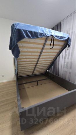 - Полная мебелировка: шкаф в коридоре, двуспальная кровать с матрасом средней жёсткости и подъёмным механизмом (удобно хранить вещи).
