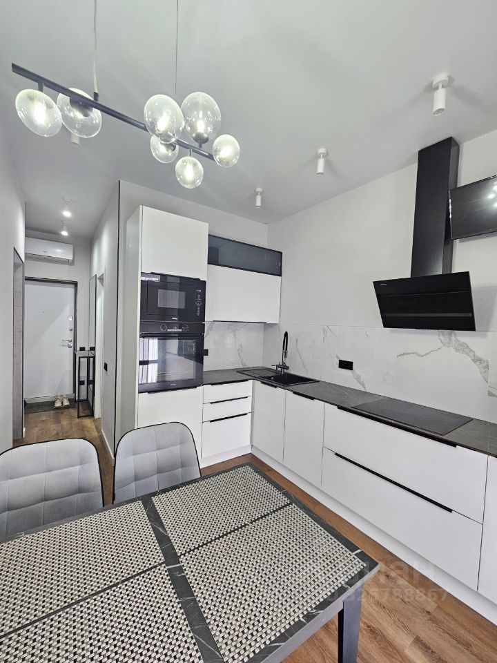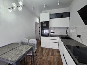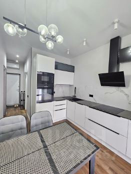 Кухня: производство Korting - встроенные духовой шкаф, варочная панель, печь СВЧ; производство Maunfeld - холодильник. Вытяжка, телевизор, система фильтрации воды.