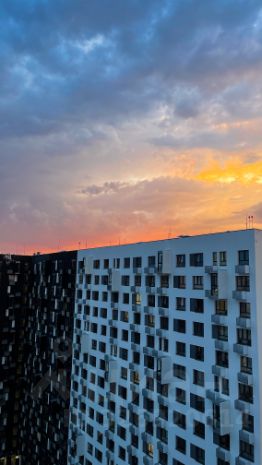В квартире очень тихо и комфортно. Высота потолков 2,6 м, потолок натяжной в зоне спальни и кухни. Окна выходят во двор, на юго-западную сторону. В квартире 2 окна, много солнечного света, а вечером открывается прекрасная панорама на закаты. Шторы блэкаут, что обеспечит качественный сон.