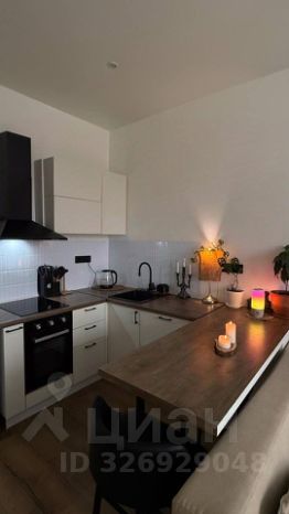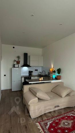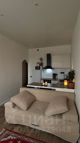 В кухне-гостиной удобная барная стойка для красивых завтраков и уютных вечеров. Есть раскладывающийся диван для гостей.