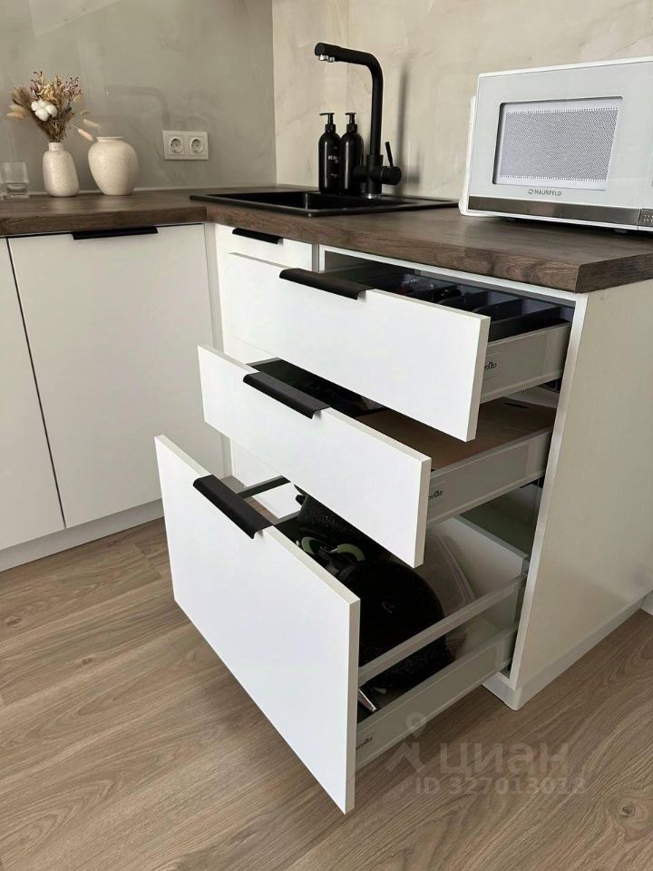 В квартире сделан современный ремонт, есть необходимая мебель как в комнате, так и на кухне. На кухне установлена вся необходимая бытовая техника: холодильник, микроволновая печь, посудомоечная и стиральная машины. Санузел совмещённый, оборудован ванной.