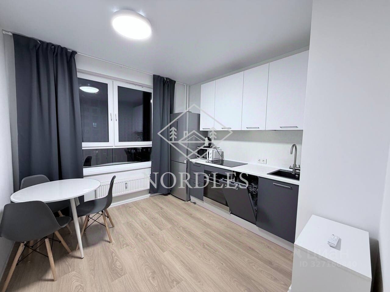 Квартира площадью 34 кв. м с евроремонтом расположена на 13-м этаже 17-этажного дома.