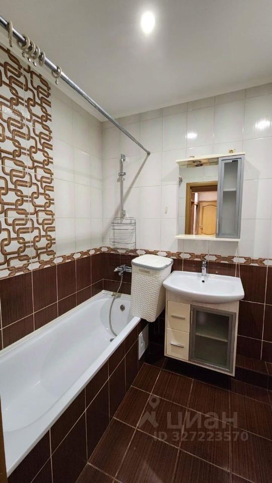 Квартира полностью меблирована: есть всё необходимое для комфортной жизни. На кухне встроенная мебель и бытовая техника, включая холодильник и стиральную машину. В ванной комнате установлена ванна, санузел совмещённый.