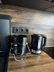 В квартире есть все необходимое для жизни: телевизор, холодильни, чайник, кофеварка, посудомоечная машина, стиральная машина, кондиционер, сушилка для вещей.