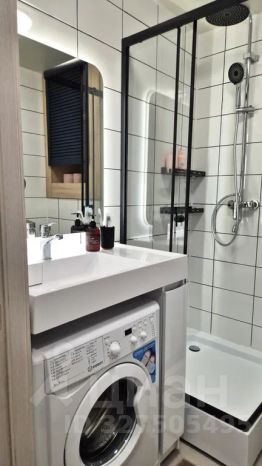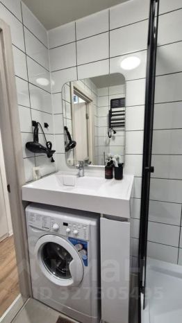 В ванной стиральная машина, туалетные принадлежности, сушилка для белья.