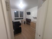 Кухня-гостиная: Удобный диван (раскладывается в двуспальное место, есть место хранения внутри), техника, телевизор.