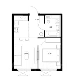 Планировка: кухня-гостиная + спальня. Пространство продумано так, чтобы удобно жить разным составом: пара или двое друзей.