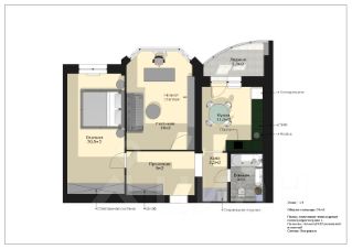 Гостиная - 19м, Спальня - 20.5м, Кухня - 11.5м, Прихожая и холл - 12.5м, Ванная - 5м, Лоджия - 5.3м