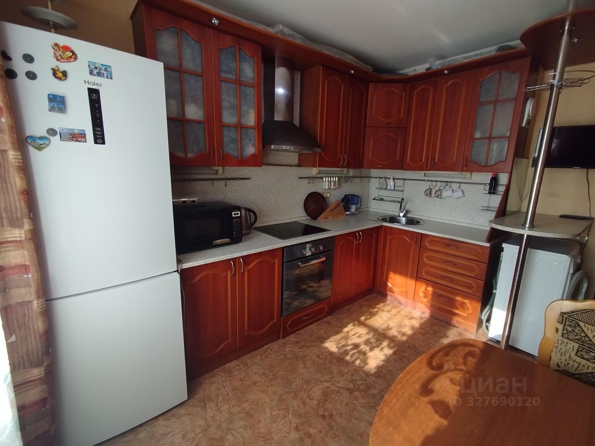 Кухня оборудована всем необходимым: есть холодильник, плита, микроволновая печь и стиральная машина,телевизор.Из мебели — шкафы и обеденный стол.