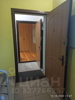 В коридоре встроенный шкаф. Комнаты закрываются стеклянной движущейся перегородкой - дверью.