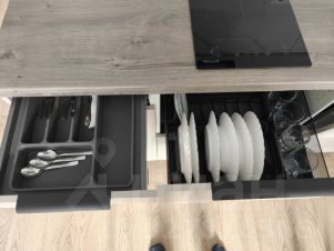 раскладывающийся удобный диван с ортопедическим матрасом, кухонный гарнитур (установлен фильтр для воды), стиральная машина с сушкой, безшумный кондиционер.