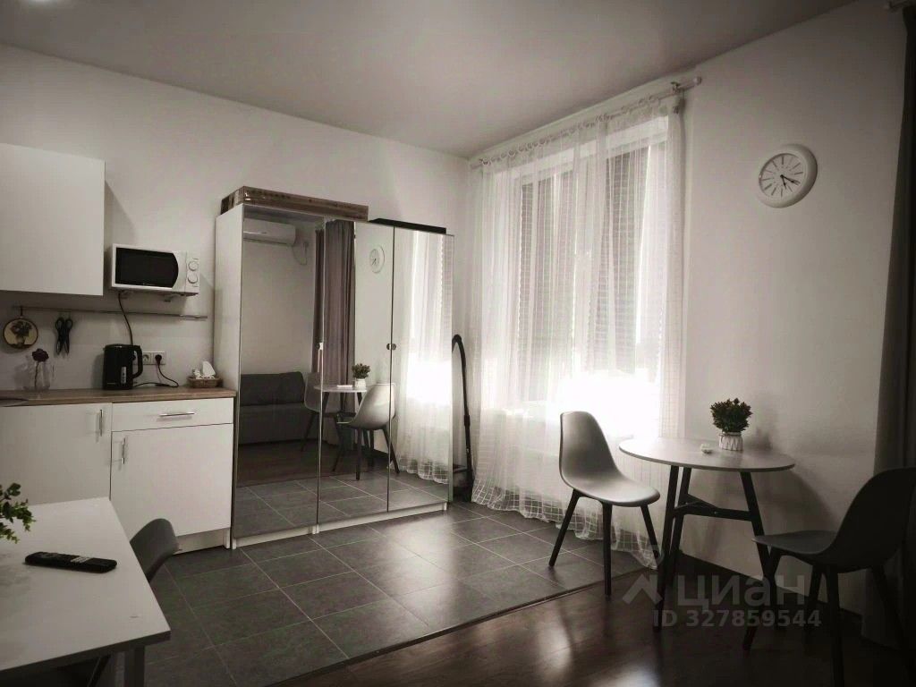 Уютная студия в отличном состоянии, общей площадью 25.1 кв.м. с хорошей планировкой. Гостиная и кухня с мебелью техникой, два окна. Просторный холл, с/у совмещен. Потолки 2,8 м.