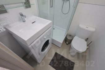 Ванная комната совмещенная, оформлена в современном стиле с душевой кабиной и качественной сантехникой.