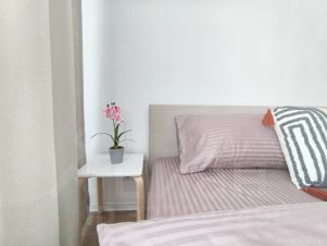 Для полноценного отдыха - удобная кровать с ортопедическим матрасом и постельным бельем из сатина - 100% хлопок. Красивая посуда. Есть парковка, удобный выезд на Ярославское шоссе. Красивый двор с детскими площадками. Автобус до ж/д станции Мытищи 7 мин.