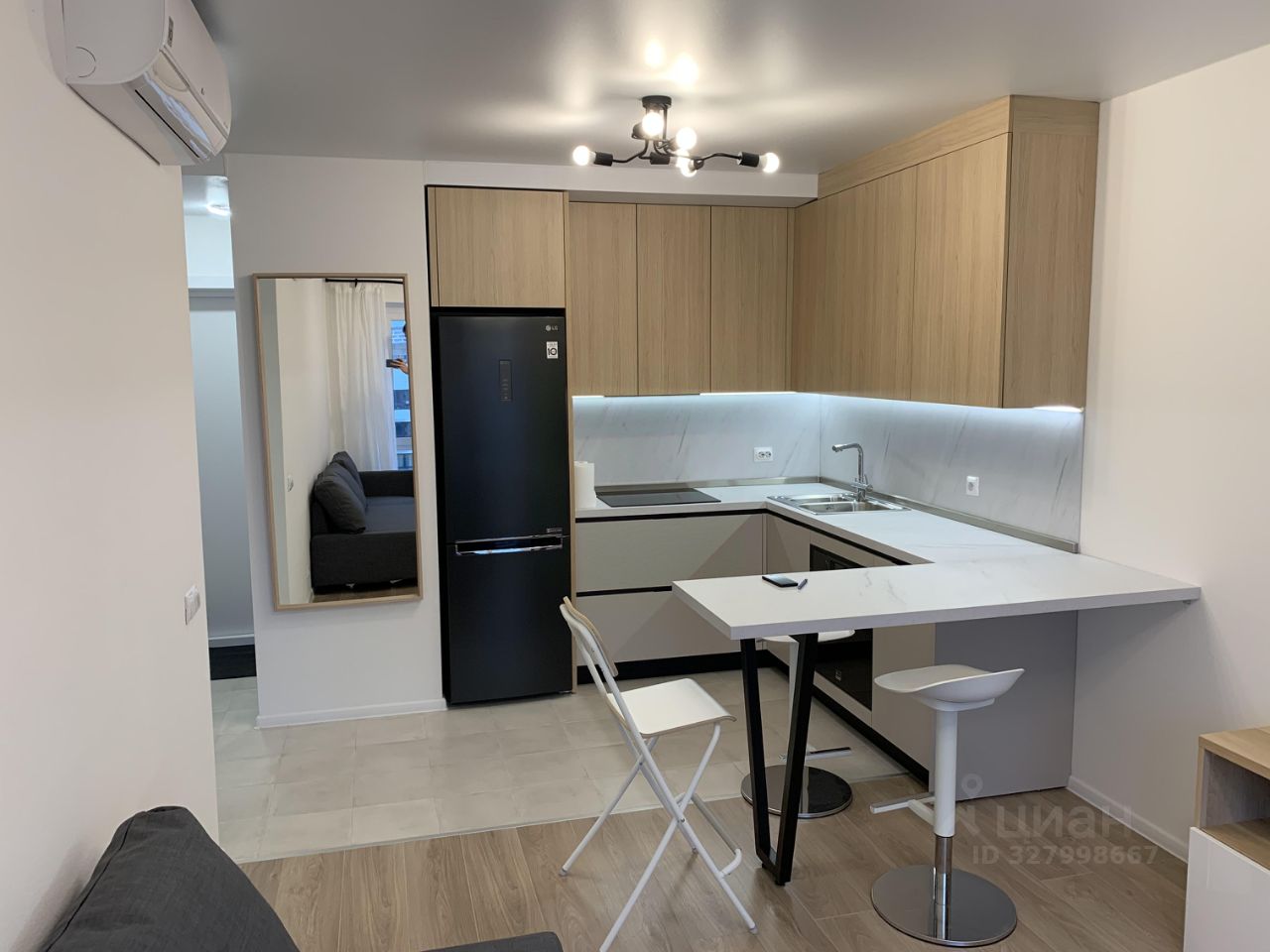 Отдельная спальня и просторная кухня-гостиная. В квартире выполнен качественный ремонт.