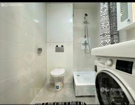 В квартире есть все необходимое для комфортной жизни: современная мебель на кухне и в комнате, а также полный комплект техники — кондиционер, холодильник, телевизор и стиральная машина. В ванной комнате установлена душевая кабина, что особенно удобно для быстрого начала дня.