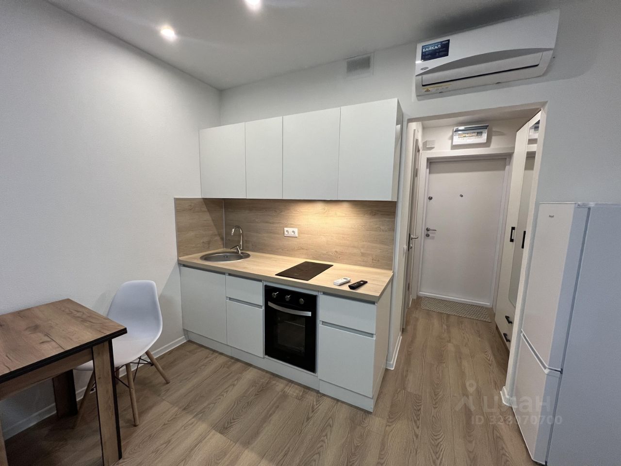 В квартире сделан качественный евроремонт, что создаёт атмосферу уюта и комфорта. Студия полностью меблирована, есть всё необходимое для комфортной жизни: удобная мебель в комнате и на кухне. Для вашего удобства установлена современная техника: кондиционер, холодильник, телевизор и стиральная машина. В ванной комнате есть душевая кабина. Подключён интернет, поэтому вы всегда будете на связи.