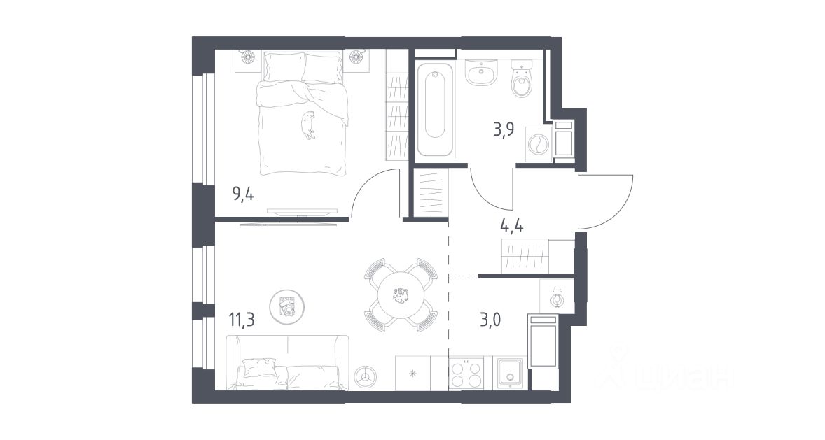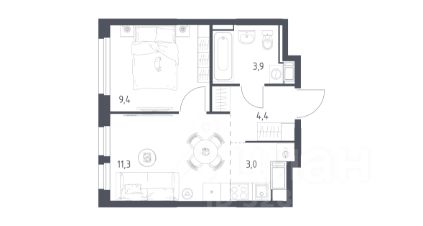 11,3 м²
